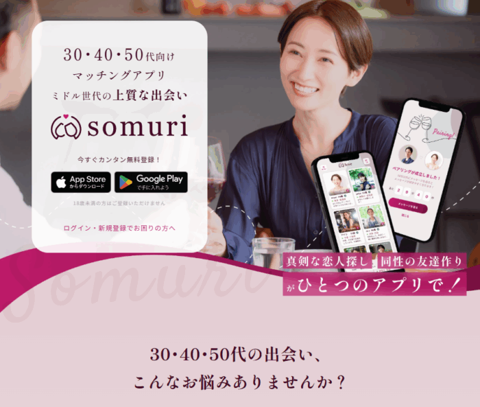注目されているマッチングアプリ **「Somuri(ソムリ)」**は、